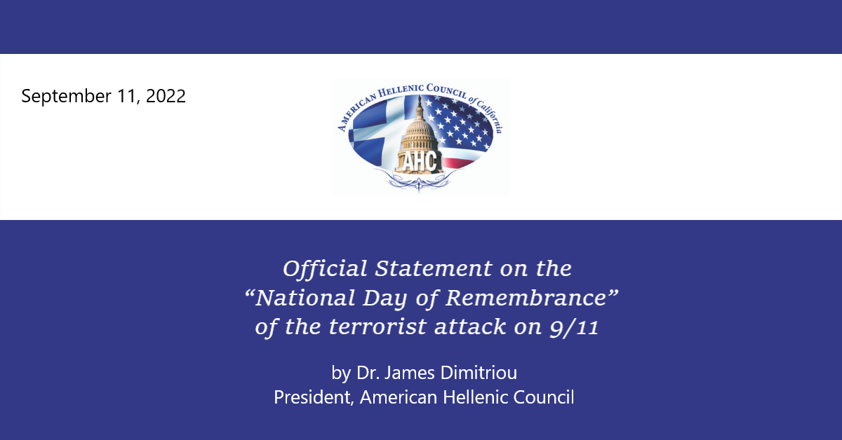The Hellenic American Council continues to be dedicated to this spirit of peace and righteousness as we honor the memory of those lost during this tragedy. We further stand committed to working on strengthening United States and Greece relations to promote peace through strength & common purpose!