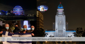 Days before the 200th Anniversary of Greek Independence, members of the Greek American community in Los Angeles began efforts to light Los Angeles City Hall in blue and white in commemoration of Greece’s Bicentennial. President of AHC, Jim Dimitriou approached Jim Birakos, a knowledgable city government executive, who was the Dep. Executive