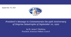 President’s Message to Commemorate the 99th Anniversary of Smyrna Catastrophe on September 10th, 1922