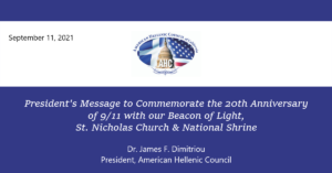 President’s Message Commemorating the 20th Anniversary of 9/11 with our Beacon of Light, St. Nicholas Church & National Shrine