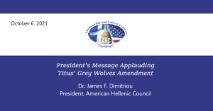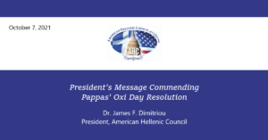 President’s Message Commending Pappas’ Oxi Day Resolution