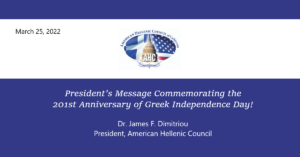 President’s Message Commemorating the 201st Anniversary of Greek Independence Day!