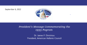 Commemorating the 1955 Pogrom – The Istanbul Riots of September 6 – 7 On behalf of the Hellenic American Council, we are committed to supporting and participating in the Commemoration of the September 6-7 1955 Pogrom. This historical tragedy is most important and we must never forget. We cannot be