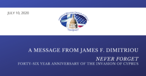 Anniversary of the 1974 Invasion of Cyprus: A Message from Dr. James F. Dimitriou