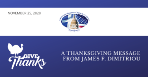 Dear friends and members of the American Hellenic Council, On behalf of the American Hellenic Council, I would like to take this time to wish everyone a Happy & Safe Thanksgiving weekend. We are optimistic that we all will be safe and careful in these times and hold the belief