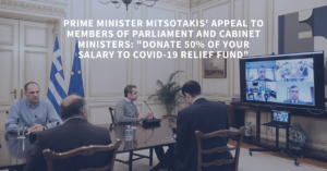On Monday, March 30, Greek Prime Minister Kyriakos Mitsotakis appeals to members of the New Democracy party, from Members of Parliament to Ministers and Deputy Ministers, to donate 50% of their salary to a COVID-19 relief fund for the next two months. Following this appeal, Greek government officials have started