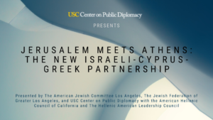 Presented by The American Jewish Committee Los Angeles, The Jewish Federation of Greater Los Angeles, and USC Center on Public Diplomacy with the American Hellenic Council of California and The Hellenic American Leadership Council Despite striking historical similarities among their peoples, Israel, Cyprus and Greece experienced mostly unfriendly relations for