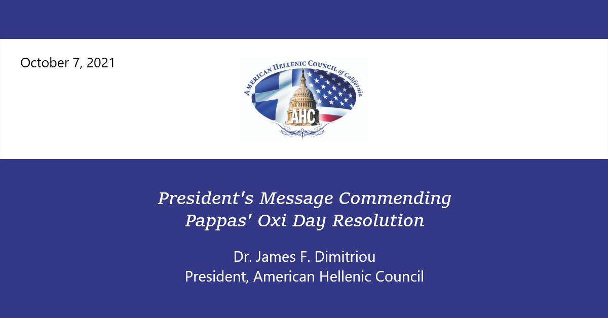 On behalf of the American Hellenic Council, we are proud to support Representative Chris Pappas (D-NH) on his sponsorship of a Congressional Resolution recognizing October 28th as “Oxi Day” for Greece’s heroic stand against the Axis powers in World War II.